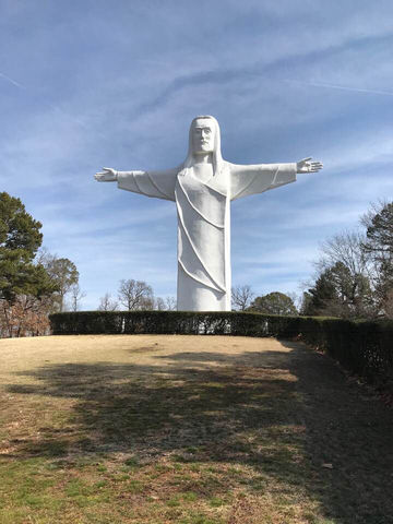 I had so much fun visiting the trails in Bentonville that I HAD to return with my boys. Unfortunately, the weather was not ideal, so we only had one day to rent mountain bikes and enjoy the trails. We did have time to see a superhero exhibit at the Crystal Bridges museum, see Christ in the Ozarks, and check out the Three State Line, though.